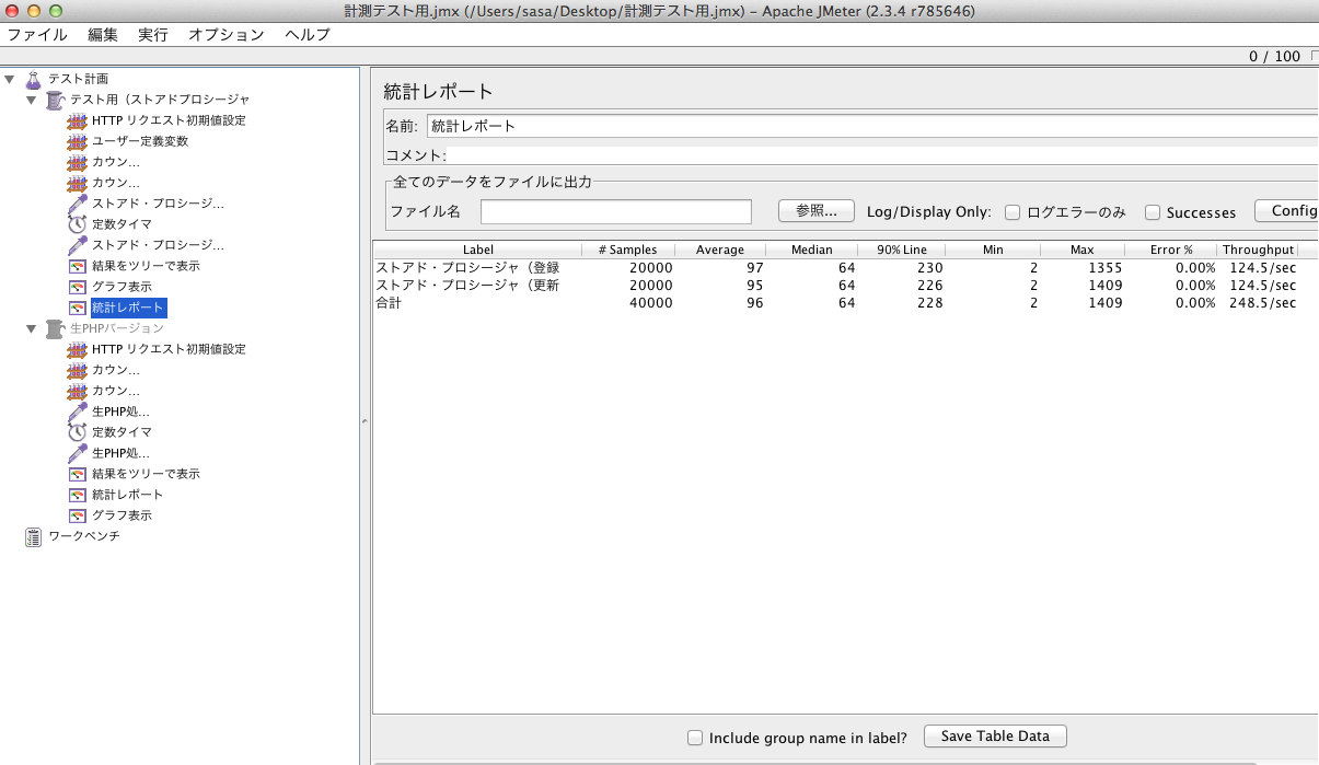 プロシージャ版の負荷テスト結果