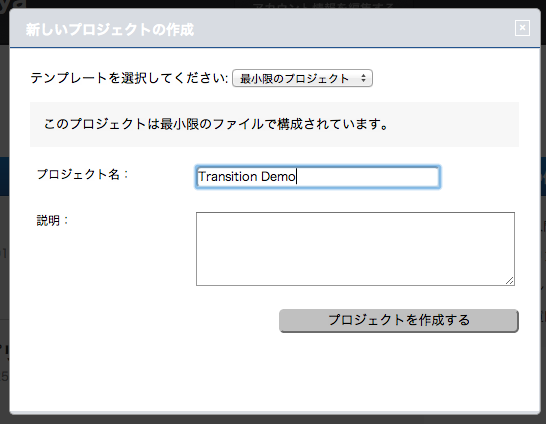 では、前回と同じように、お試し用のプロジェクトを用意します。