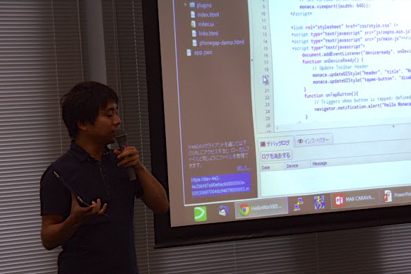 Monacaの紹介と併せてHTML5及びJava Scriptという参加者の皆さんが慣れ親しんだWeb標準技術でiOSやAndroidに対応したモバイルアプリケーションを開発する方法を解説させていただきました。