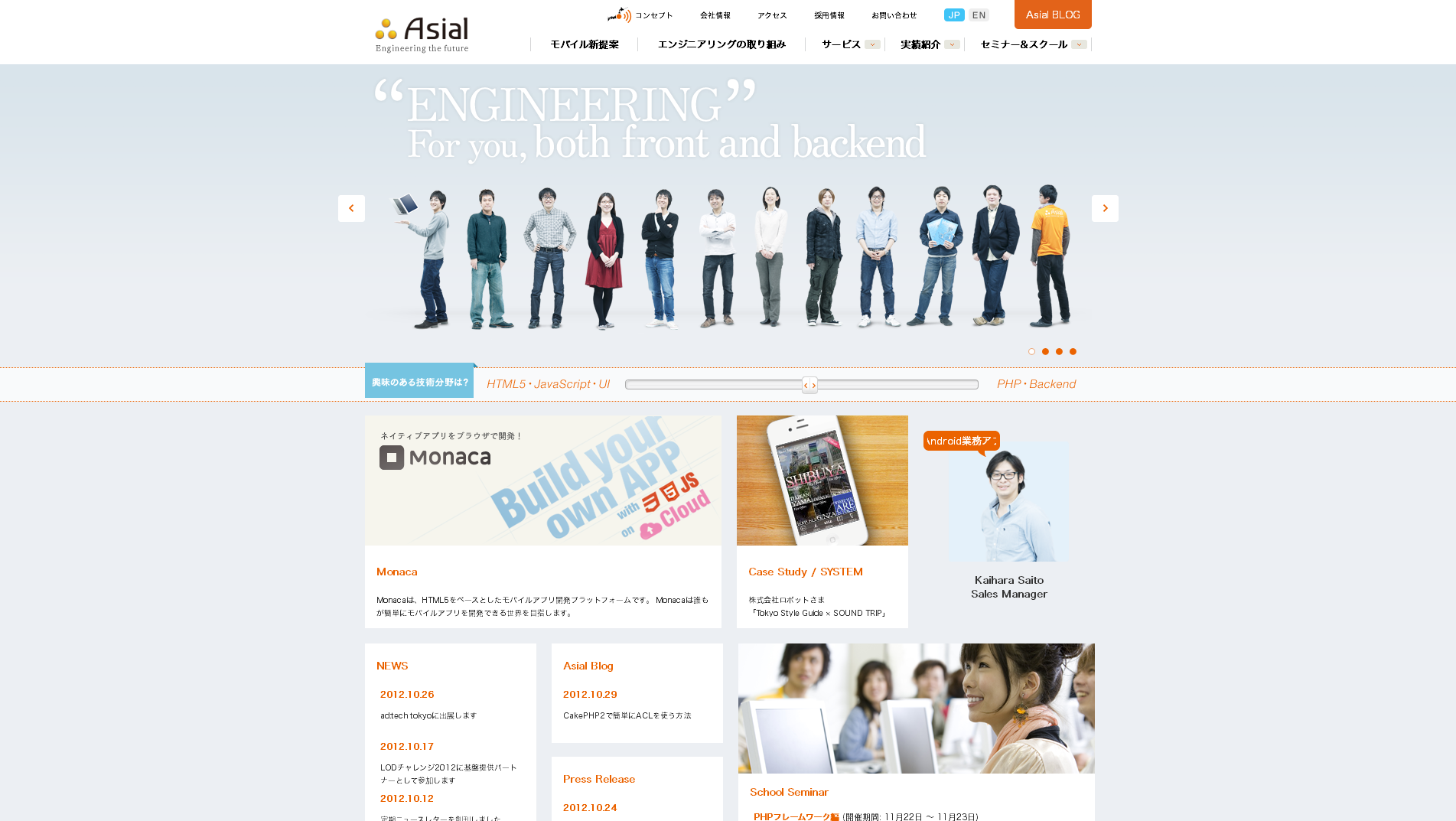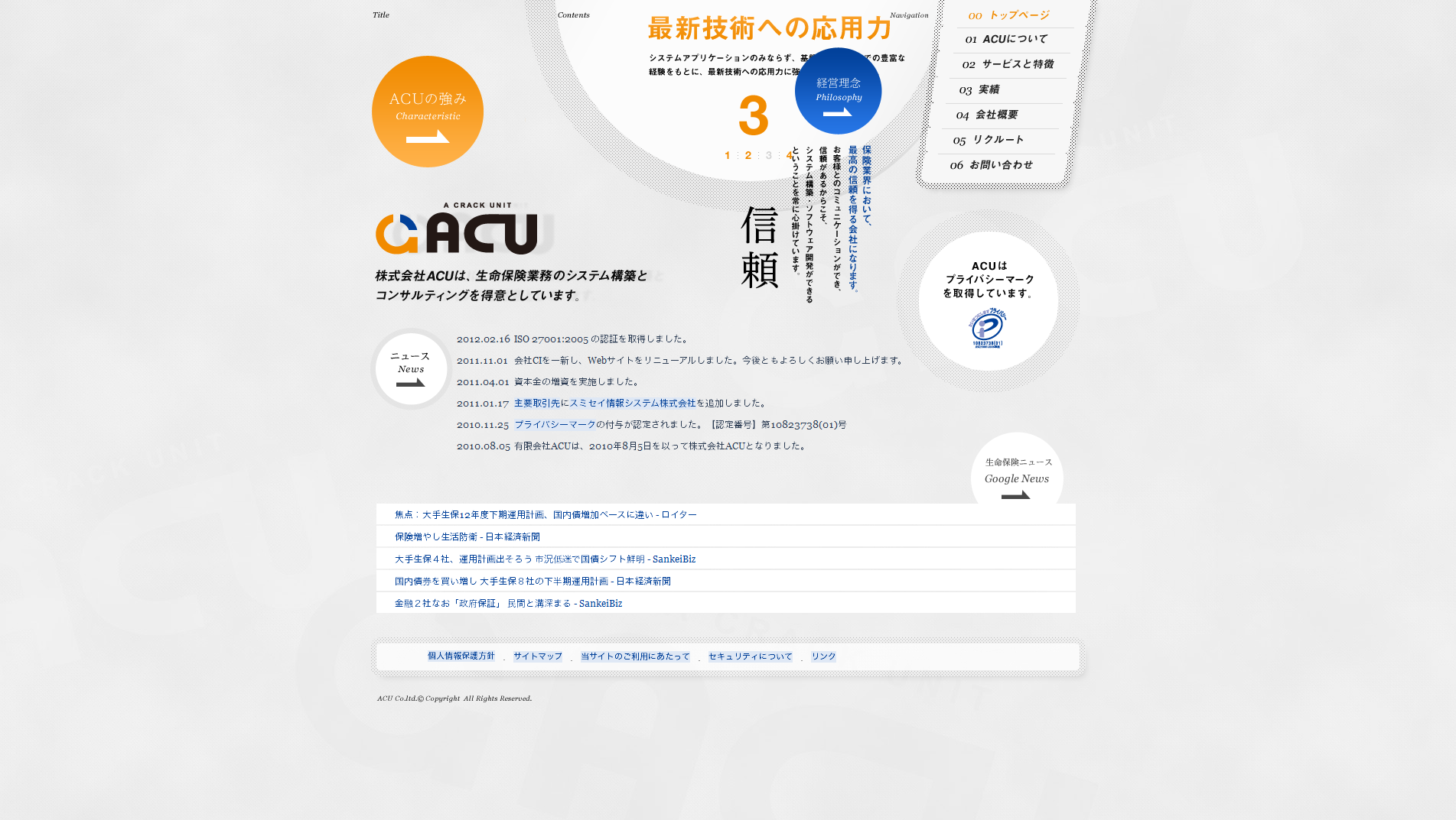 最後は弊社のサイトです(笑)グレーにオレンジと水色を使用して作られています。