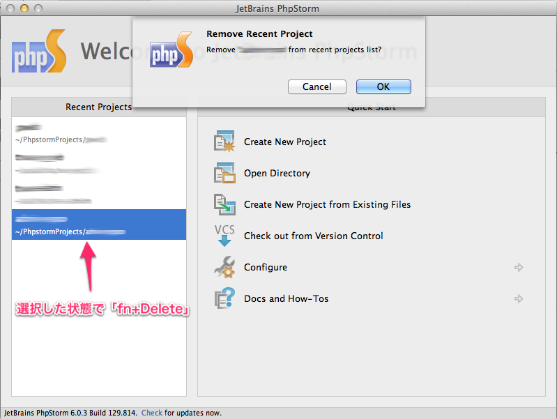 PHPStormのプロジェクト一覧に表示させたくないプロジェクトを削除します。