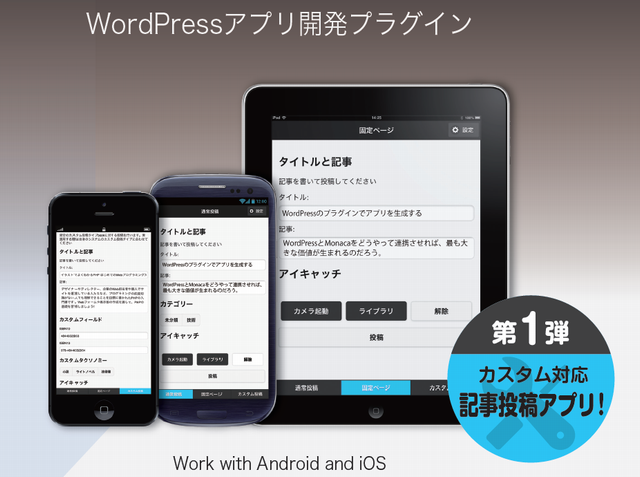 お蔭様でMonacaPressプラグインを世に出すことができました。やはり自分のプロダクトを持てるというのは嬉しいものですね。まだ投稿アプリしか作れませんが、バリエーションを充実させることでWordPressを利用するWeb制作者の方がより簡単にモバイルアプリを開発できるようにします。