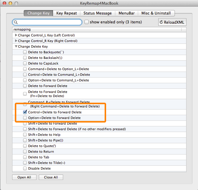 そこでFn+deleteではなくcontrol+deleteにキーを割り当てることでタイムロスを防ぐことにします。