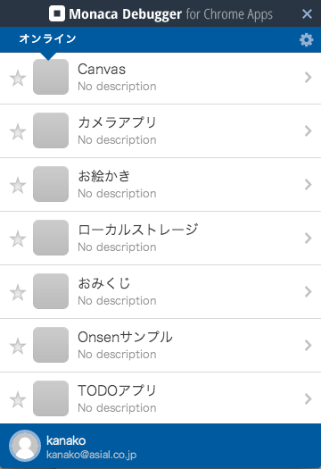 動作確認用アプリ「Monacaデバッガー」も、Chrome Apps版がリリースされています。
