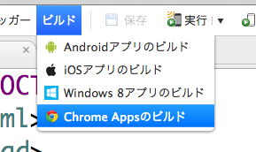 ビルドはMonaca IDEの ビルド>Chrome Appsのビルド を選択するだけです。