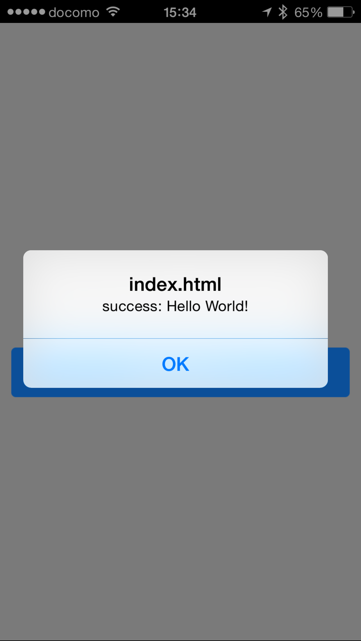 この中で実行されている cordova.exec がネイティブプラグインの実行部になります。 HelloWorldPluginのsayメソッドを実行しています。