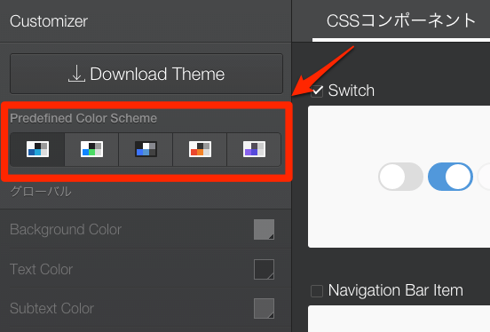 自分で一からカラー設定を変更していく他、予め作成されているカラースキーマからまとめてカラーリングを変更することもできます。