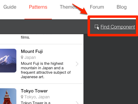 そしてさらに右上にあるFind Componentをクリックすると、表示部分におけるUIコンポーネント名を知ることができます。