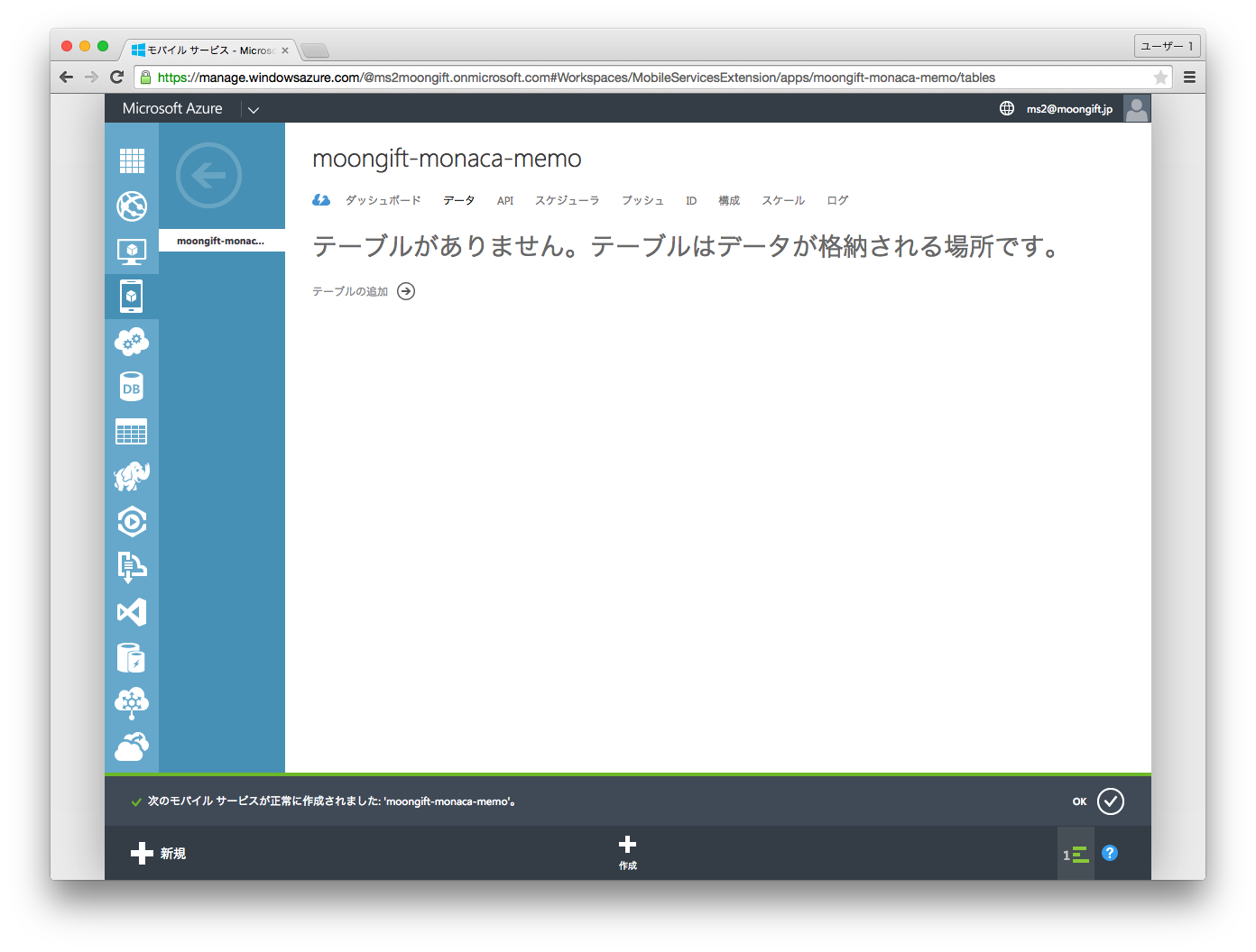 Windows Azureにてモバイルサービスを作成