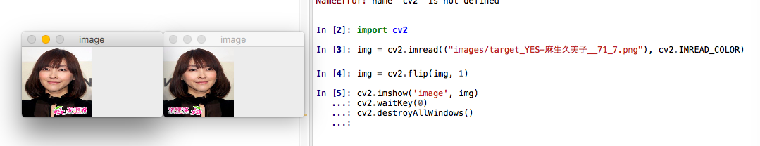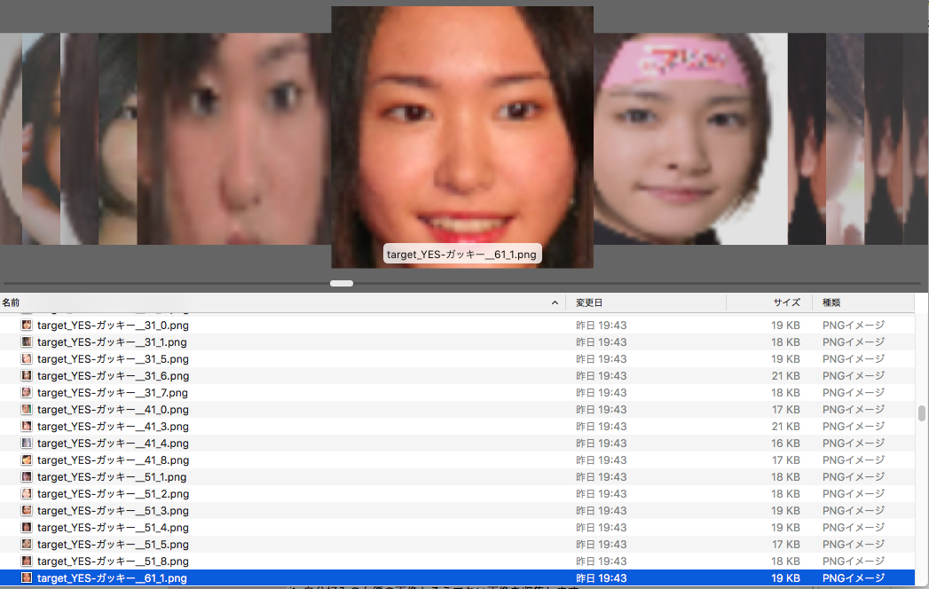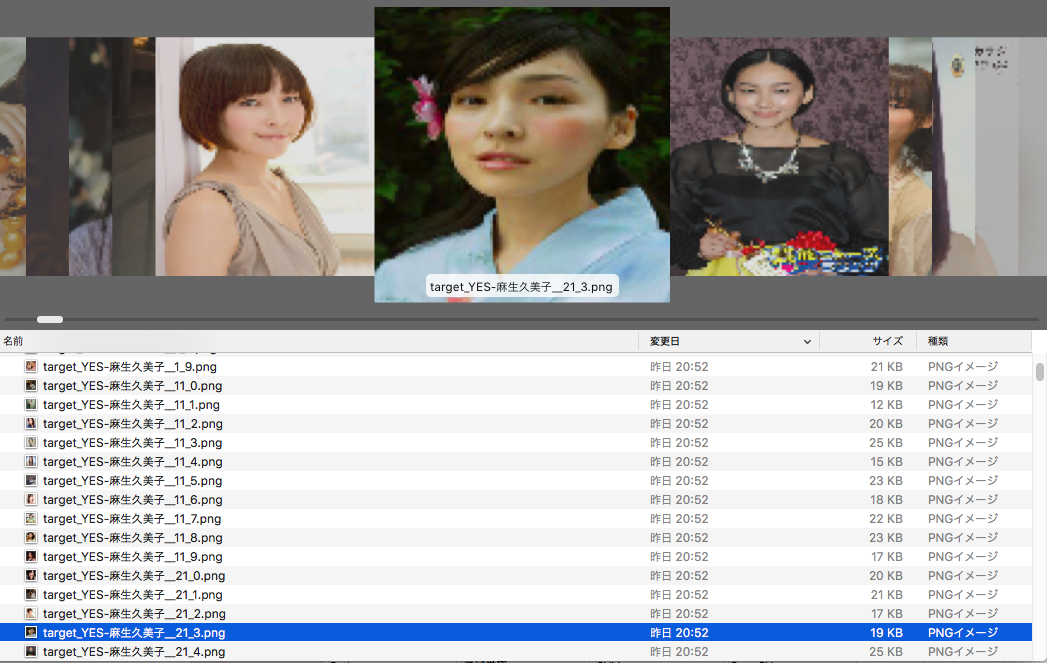 女優の画像素材を増やすために、すでにあるfaces下の画像を反転させ、