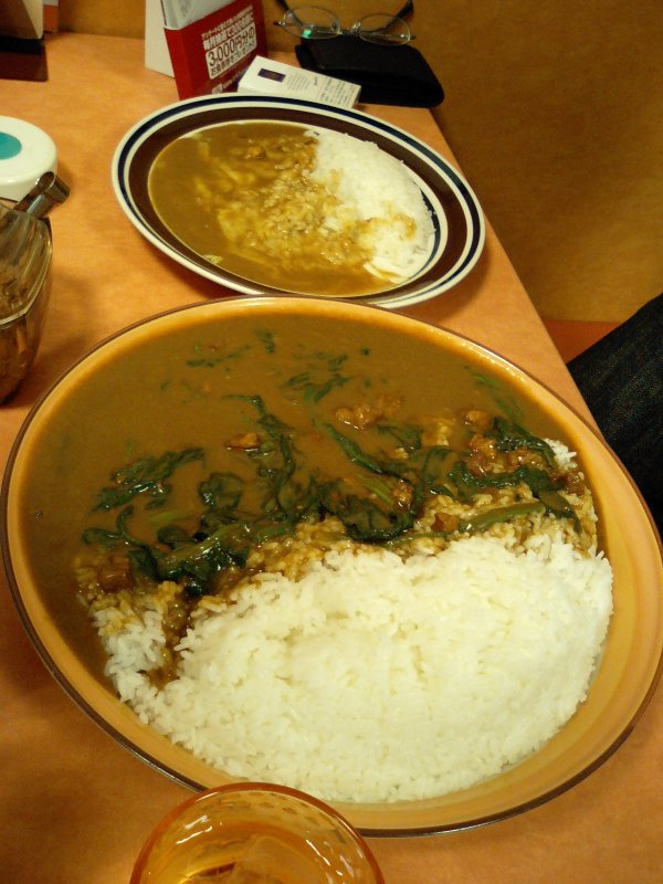トッピングも自由に付けていいとのことなので、ほうれん草カレーライス1000グラムを注文。