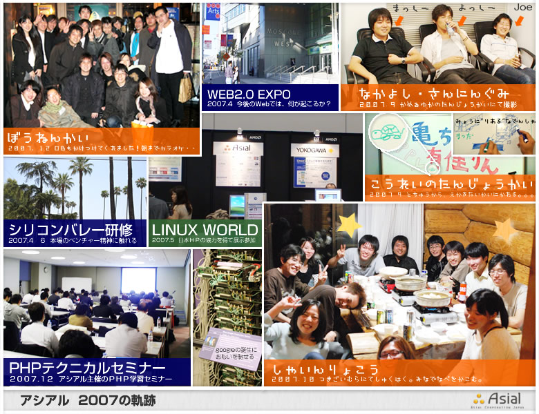 当初は、「初め」ということで、2008年に向けた内容を書こうか・・とも思いましたが、ふと、2007年を振り返ってみたくなりました。卒業アルバム風に2007年のアシアル写真集を作ってみたいと思いました。