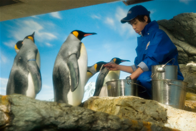 餌付け。ペンギンたちは意外に賢く、自分の番をじっと待っていました。
