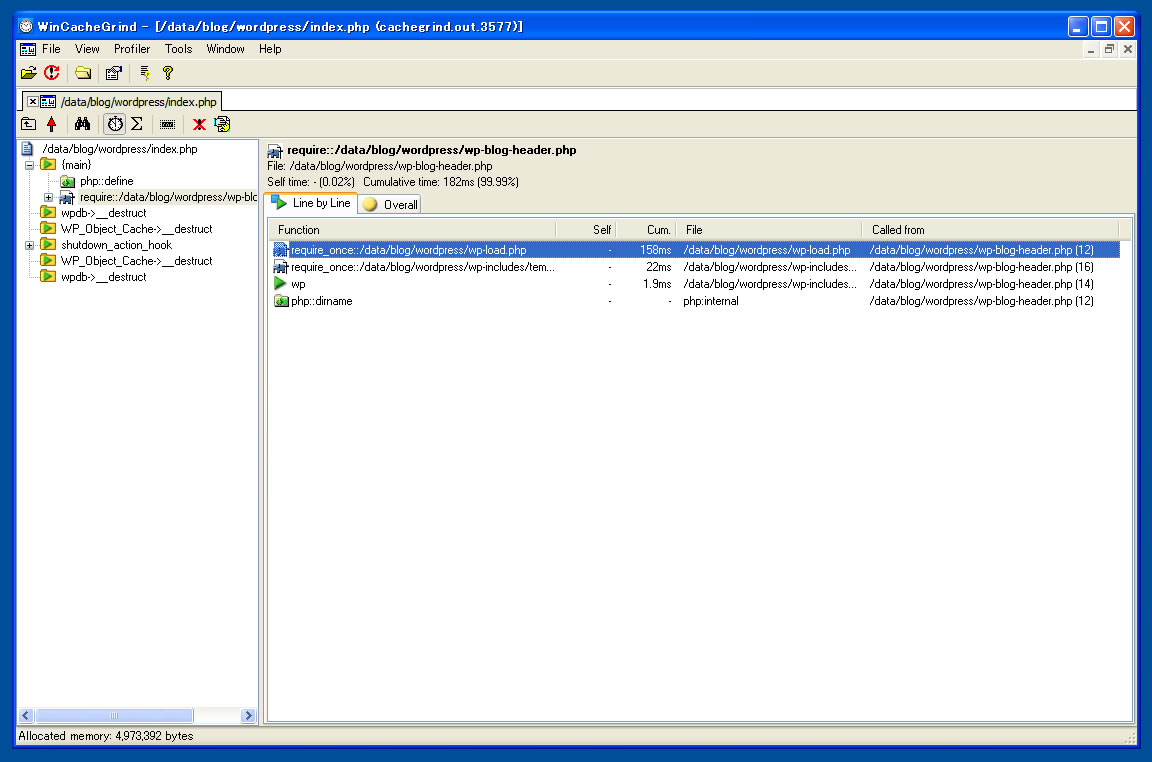あとは、WinCacheGrindで作成されたファイルを取り込めば、関数ごとの