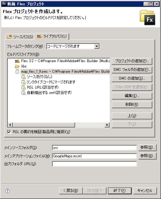 map_flex_1_9.swcとmap_1_9.swcの二つがありますが(2009年4月13日現在)、flex用のmap_flex_1_9.swcを選択します。