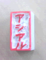 先日、誕生日会のネタで肩たたき券を作ったのですが、どぉ~も寂しい感じになったので、会社印を押そうと思って、でも実務で使ってるのはなぁ・・・と思って、急遽消しゴムで作ってみました。