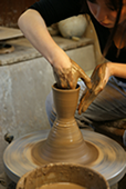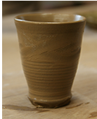 ロクロコースと手ひねりコースの2つがあったのですが、私はロクロコースで湯のみを作りました。焼きあがったら実家のじいちゃんにプレゼントする予定です。もう歳で手がプルプルしてるので、持ちやすいようにできるだけ細長めに作って、滑り止めとして模様もいれてみました。