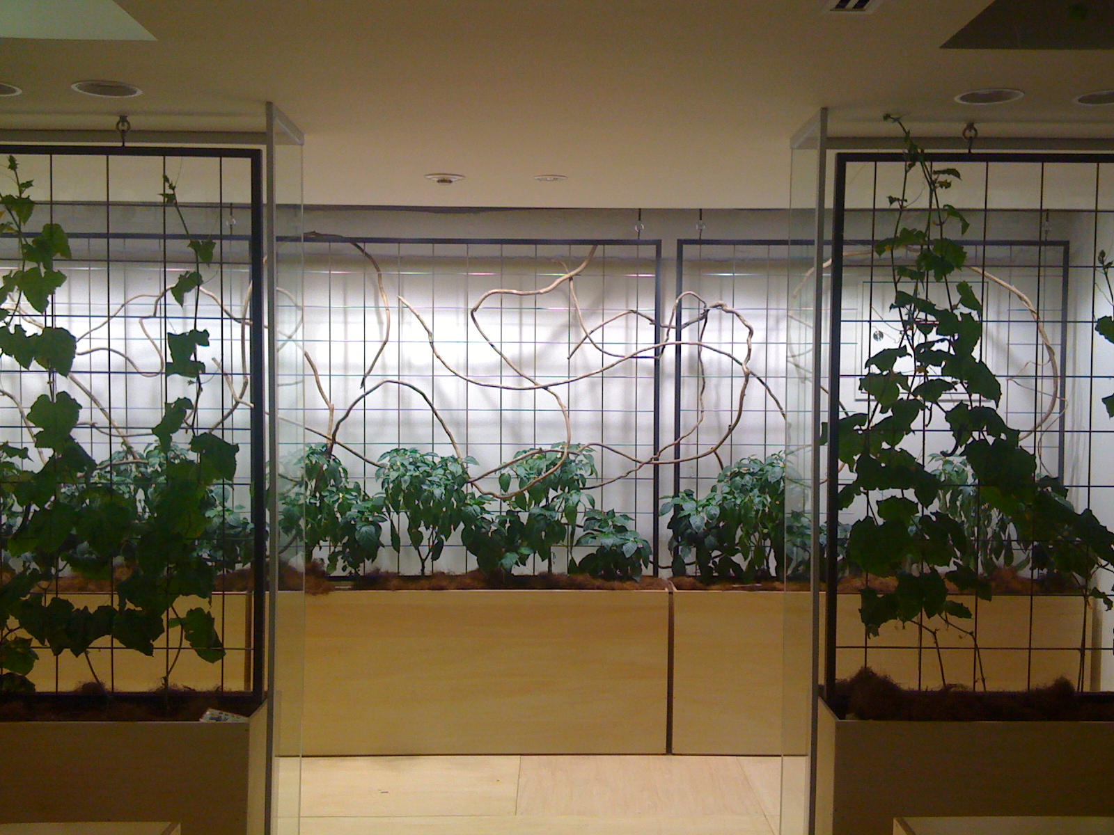 2階は打ち合わせスペースとなっているのですが、ここにも壁や天井に野菜やハーブなどの植物がぎっしりです。