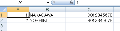 1,"NAKAGAWA",09012345678 #これは頭の0が消える