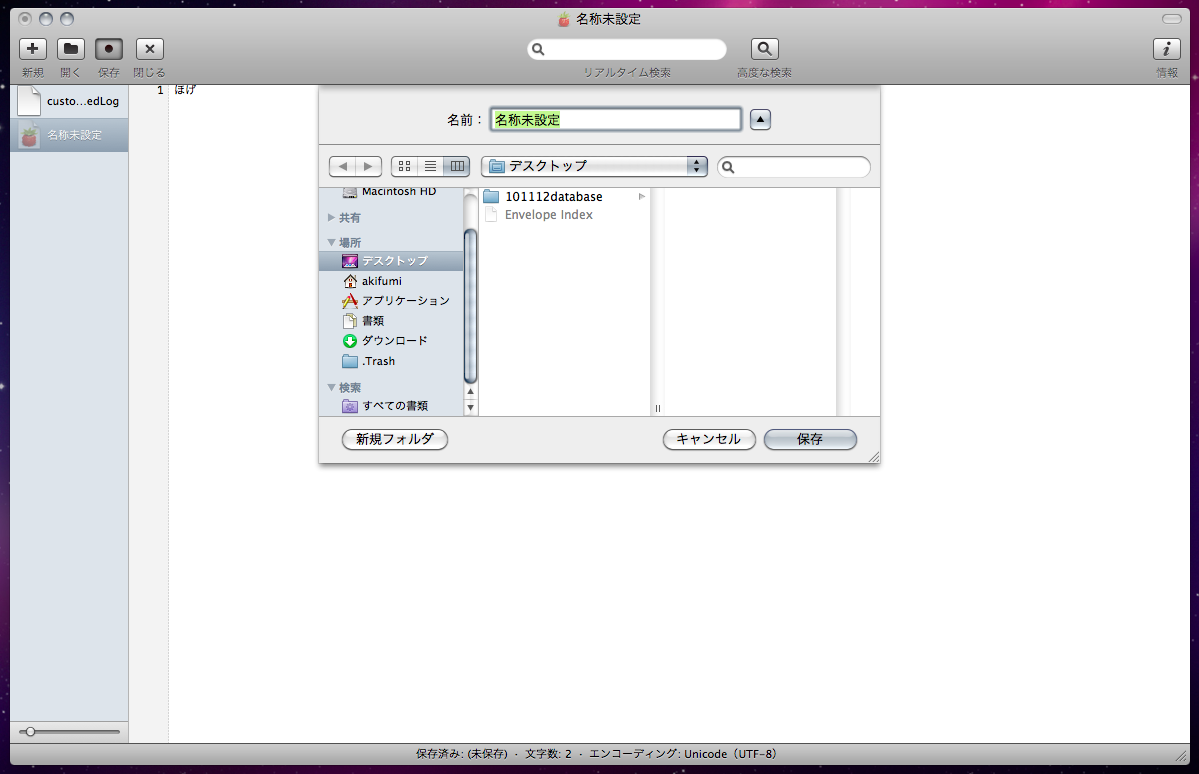 ファイルを保存するときの表示、初期設定だとこんな感じの画面が出ると思います。