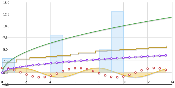 flot付属のサンプルデータを元に何個か変更しつつ動かしてみたら以下のような感じで動作確認できました。