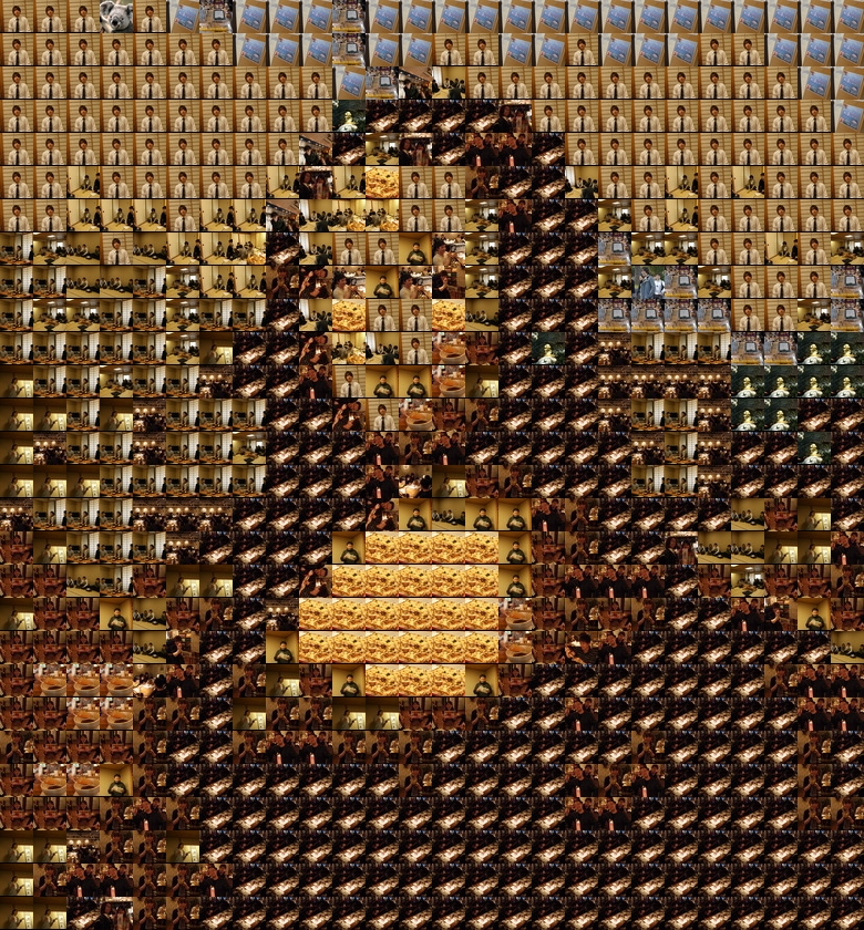 ミニ画像を作るための画像は、会社の誕生日会や社員旅行の写真を使用しました。(約100枚)ミニ画像を作ってながめてみると、色に相当偏りがあります。オレンジや茶色の暖色系が多かったので、再現したい画像も同じような色合いのものを選びました。