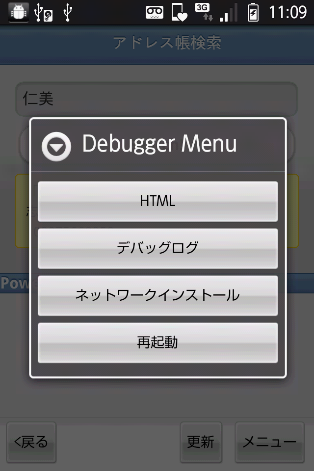 はじめの画面と見比べるとわかりますが、デバッガのメニューが表示されておらず、ネイティブアプリとして動いていることがわかります。