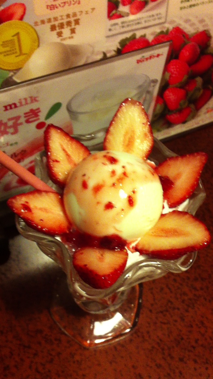 プリンでもったり、ソフトクリームでさっぱり、時々イチゴ、を繰り返し味わいます。