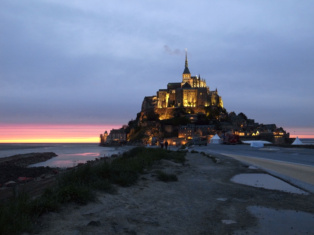 下の写真はモンサンミシェルです。夕焼けなのに、夜の9時半くらいです。