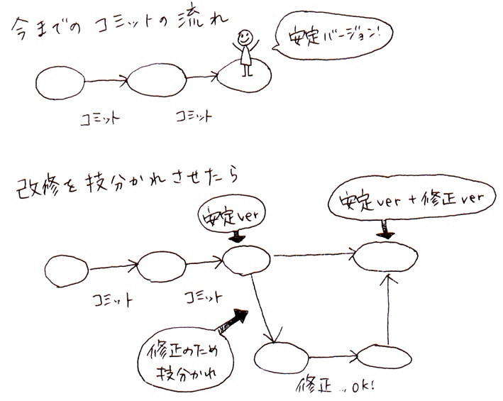 ・ブランチはバグ修正や、大掛かりな修正など本流をいじりたくないときに便利