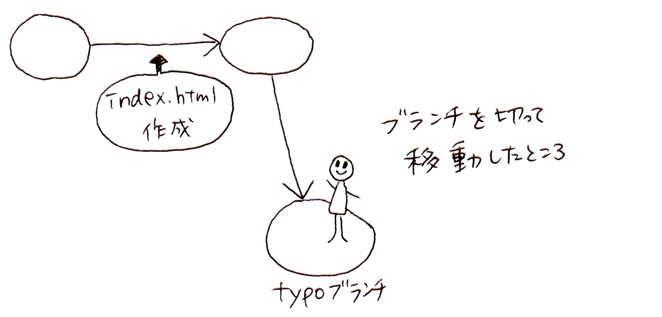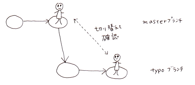 では、typoブランチに切り替えて、本当に切り替わったか確認します。