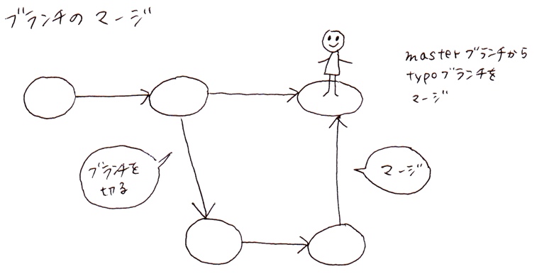 では、先ほどのtypoブランチをmasterブランチにマージします。