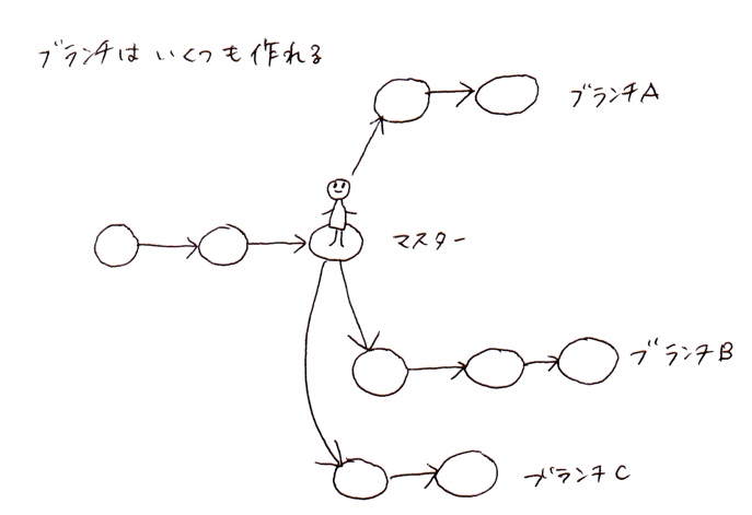 また、先ほどの図でいうと、安定バージョンを「masterブランチ」といいます。