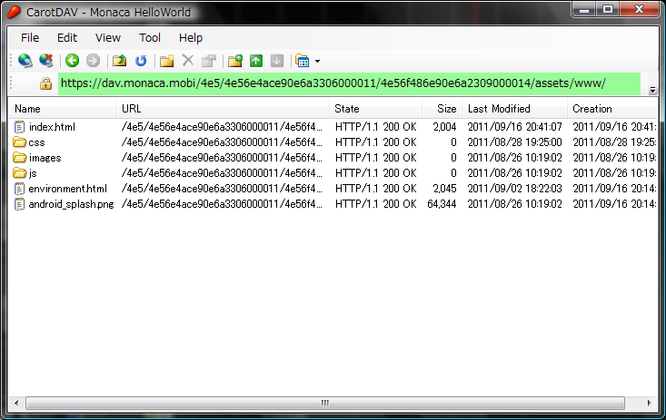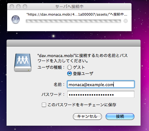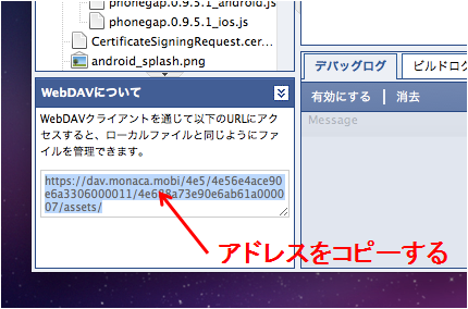 Monaca ドキュメント: リモートフォルダ (WebDAV) を利用する