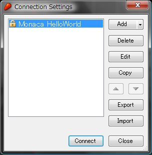 接続情報が追加されました。Connect ボタンを押します。
