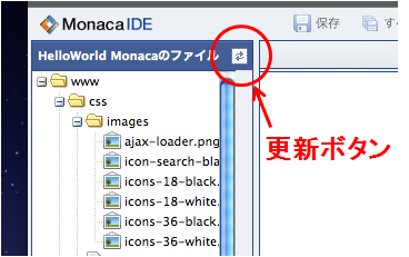 編集内容が IDE に反映されていない場合は、更新ボタンを押してください。
