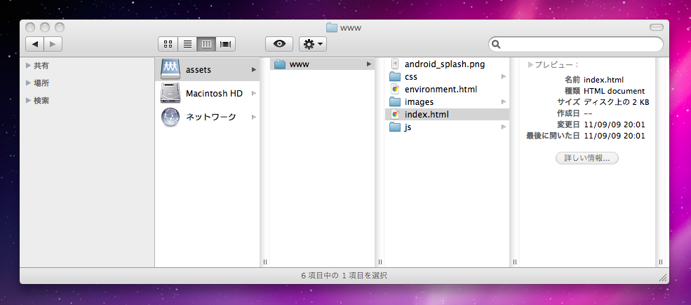 Finder が表示されて、プロジェクトファイルにアクセスすることができます。ファイルを編集したり、画像を追加したりできます。