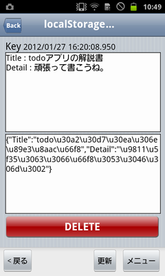 このlocalStorageマネージャーはMonacaデバッガー専用です。このようなツールが作成/使用できるのもMonacaの魅力です。
