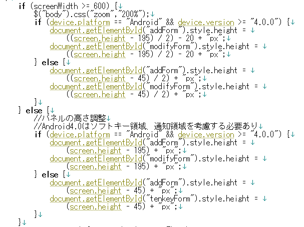 せっかくのアプリですから、多くの人に使ってもらいたいものです。多くの端末で快適に動作する為に、 screen.width で画面幅を取得して、画面幅が 600 以上だったら、高解像度対応を行うと言うコードを挿入します。